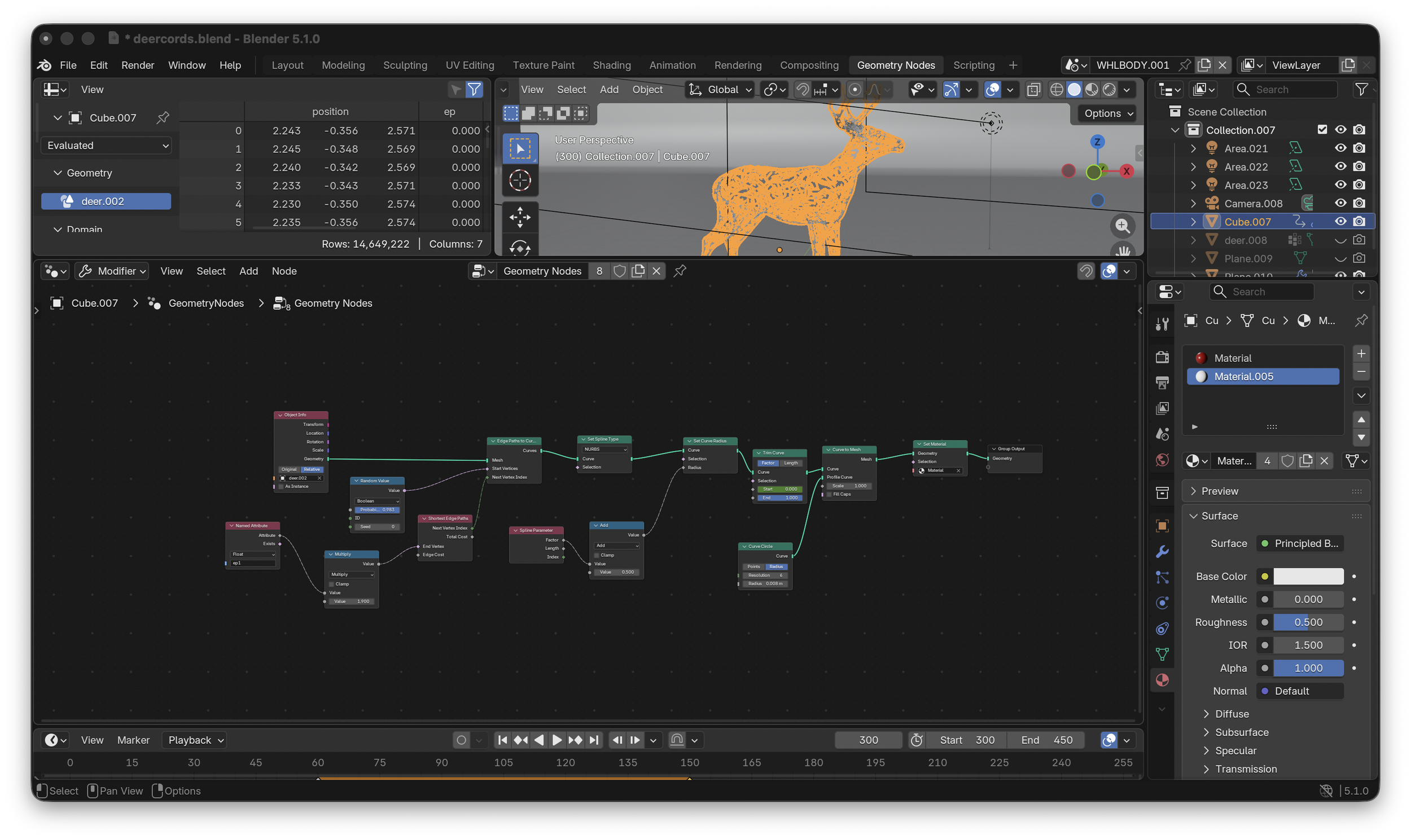 I confess that the most amount of time was spent in Premiere (and rendering). Like I said I had a pretty solid vision for this piece, including the sound design of it. It’s not very fancy but transmitting a spooky atmosphere is very sound oriented for me ar least, so I put a lot of effort in it. It was quite fun to go back and spend some time with this god forsaken software called adobe premiere. Making sure that every noise is in the beat and motion of everything is very satisfying, and seeing the whole project come together in here was amazing. Can’t wait to continue the development of more of these messenger deers.