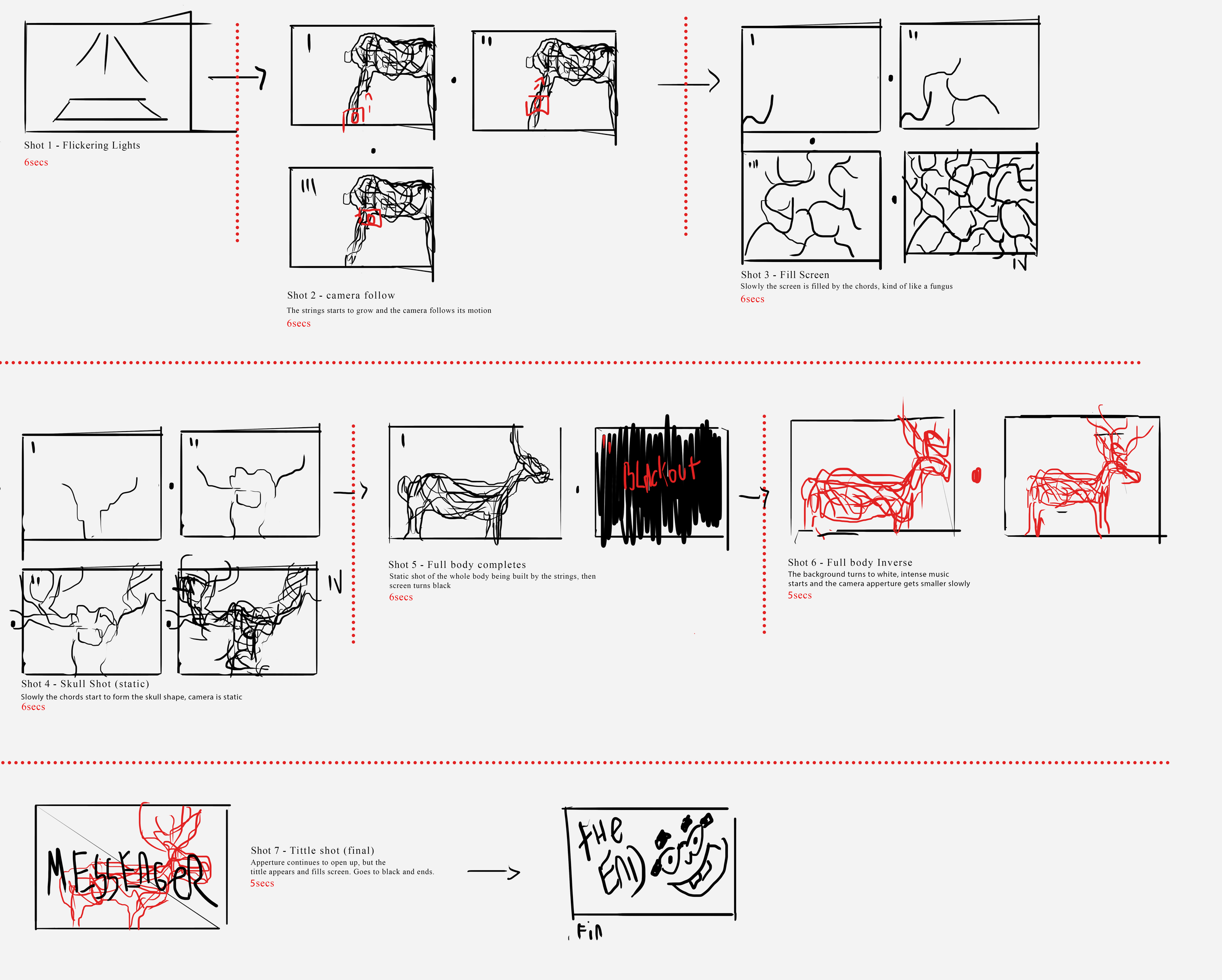 For this project I had a pretty specific way of visualizing its presentation, so I made a pretty basic and quick storyboard so that I could consolidate the beats of the video in my head. In the final version there were some minor changes in the editing but the overall structure stayed the same.